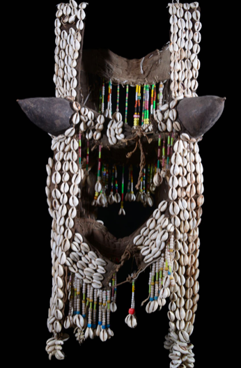 Rajoutons son rôle de porte bonheur (grigris) qui orne les tenues des chasseurs et des guerriers, tressé dans les masques sacrés et les costumes de danses cérémonielles. Le cauri peut être aussi un élément dans la médecine traditionnelle, et accompagner les défunts dans leurs voyages hors du monde.