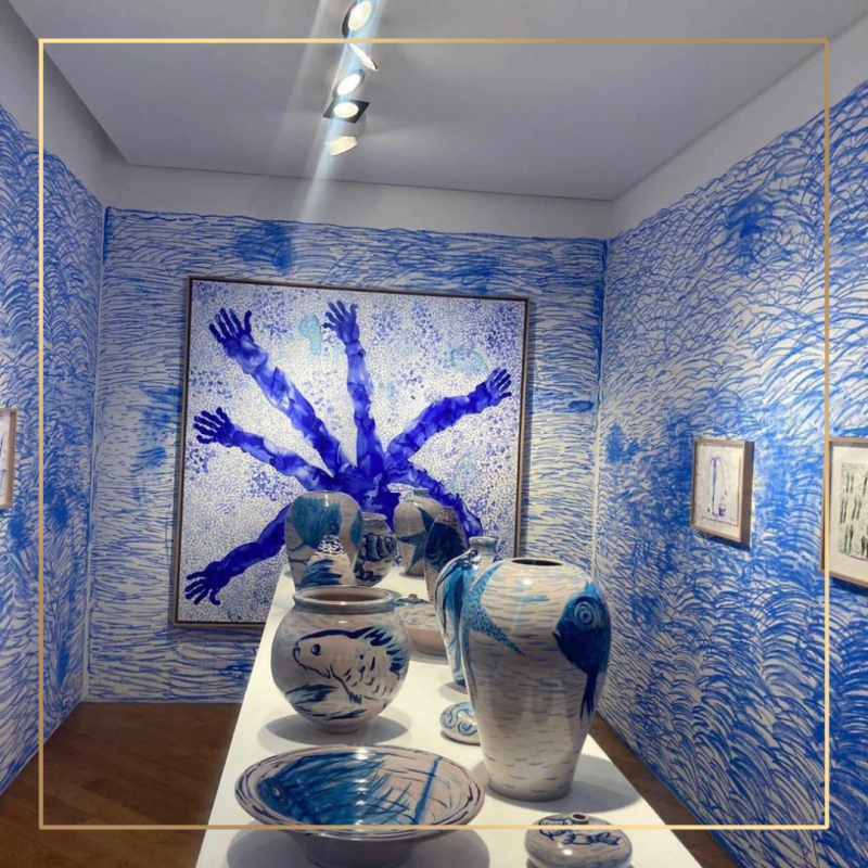 Les œuvres ont été conçues dans le cadre d’une résidence artistique au Musée Picasso de Barcelone. Il nous invite à plonger dans un univers où poissons et oiseaux se côtoient, entre tableaux, sculptures, amphore et céramiques.